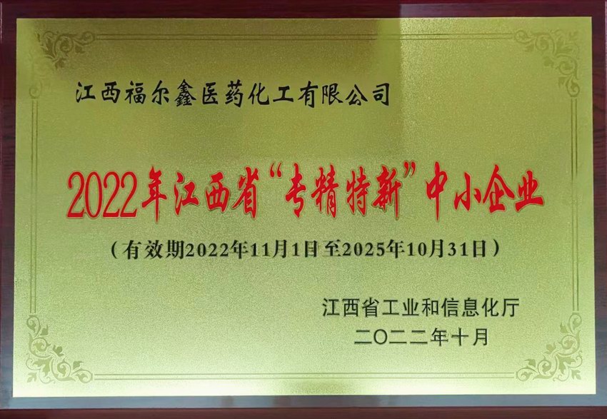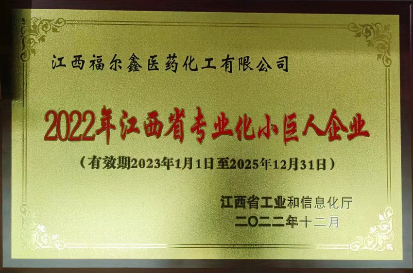 江西福爾鑫醫藥化?有限公司成?于2011年3?,坐落于有著”上乘富饒、?態之都、??通衢”美稱的江西省上饒市鉛?縣境內?業園區。公司占地?積300多畝,是?家以磷精細化?系列產品開發、?產和銷售為主業的?新技術企業。主要產品有次磷酸鈉、四羥甲基硫酸磷(THPS)、四羥甲基氯化磷(THPC)、四羥甲基硫酸磷脲縮體(THPS -U)、四羥甲基氯化磷脲縮體(THPC-U)、次磷酸、磷酸、磷酸三鈣、雙(2,4,4三甲基戊基)膦酸,272(?異?基次磷酸)、亞磷酸鋁等系列。
